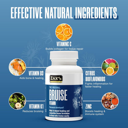 Zax’s Bruise Vitamin is specifically designed for those who bruise easily or often, to help your body heal from the inside out.